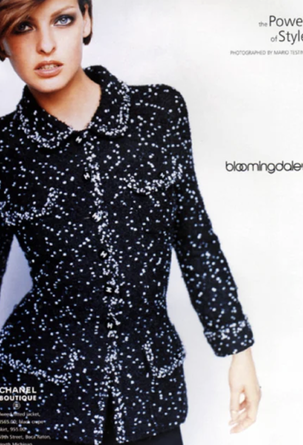 - A timeless collector's piece from mid '90s Chanel. Rendition seen on the cover of Vogue Spain on the iconic actress Monica Bellucci shot by the famous Jose Ferrater. Also seen on Linda Evangelista for Bloomingdale's lensed by the reknowned photographer Mario Testino.