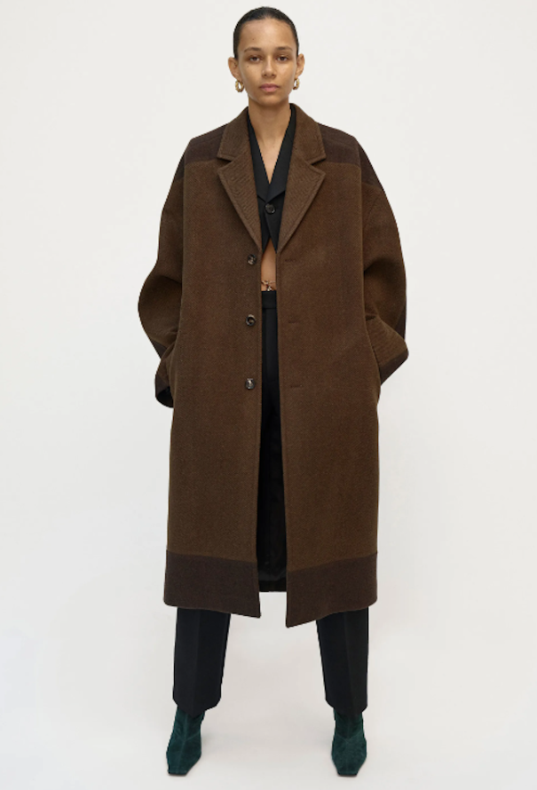 - Brown chevron wool single-breasted coat, fully lined