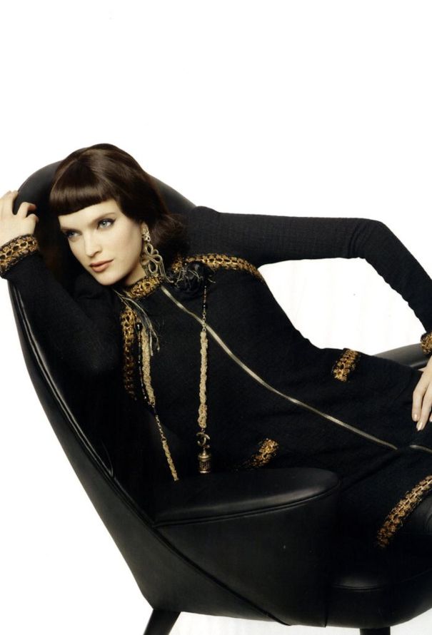- An elegant evening piece from Chanel's Métiers d'Art collection. As seen in the official ad campaign on the model Mirte Maas lensed by the designer Karl Lagerfeld himself.