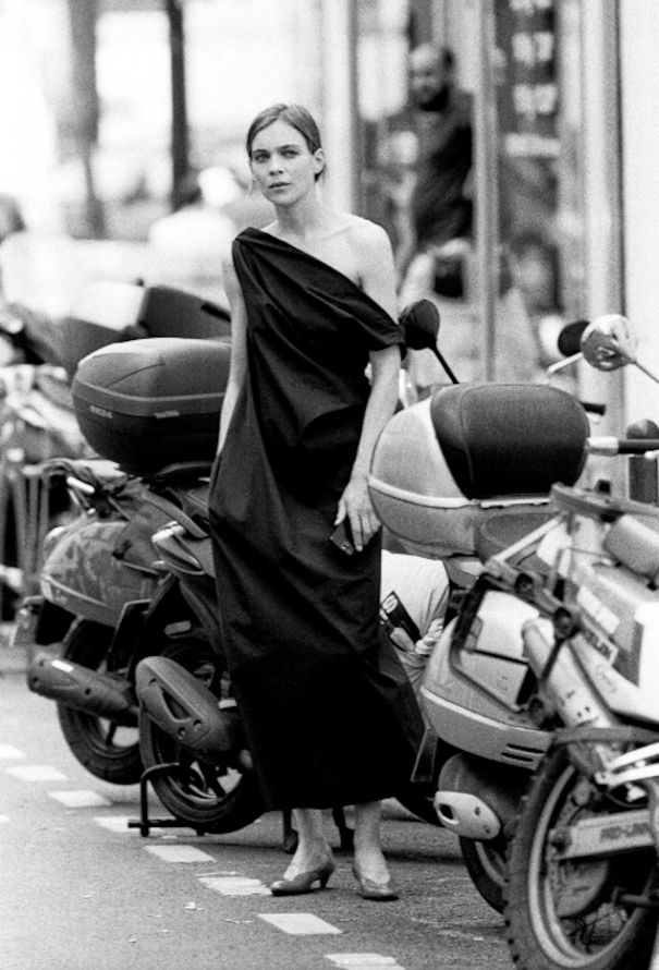 - Grecian draped off-shoulder leading to a bias silhouette
