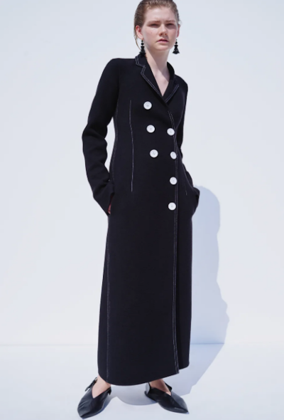 - Black wool double-breasted coat, fully lined
