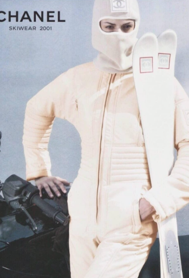 - The ultimate Winter après-ski piece from Chanel's iconic F/W '01 runway. Seen in the official ad campaign shot by Karl Lagerfeld.