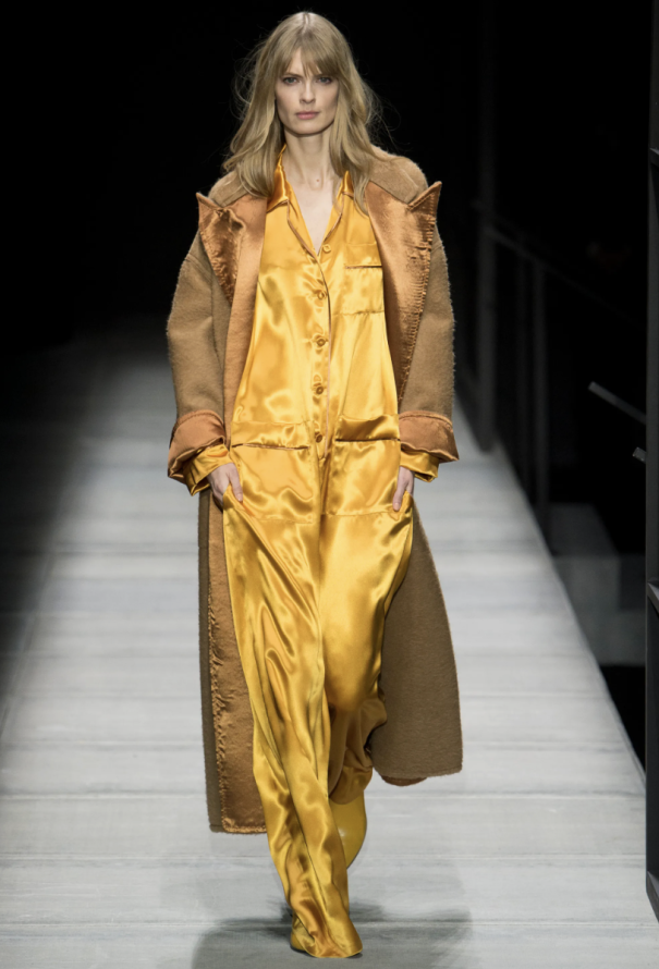 F/W 2018 Notched Satin Camel Coat