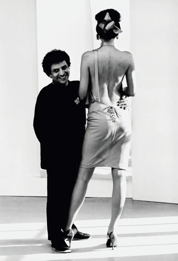 - Rendition of the dress photographed on model Marcie alongside M.Alaïa in 1981 Paris, photographed by Peter Knapp.