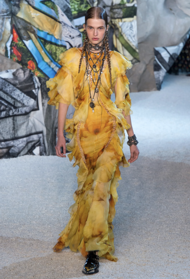 - Alexander McQueen by Sarah Burton Ruffled Floral Chiffon Gown