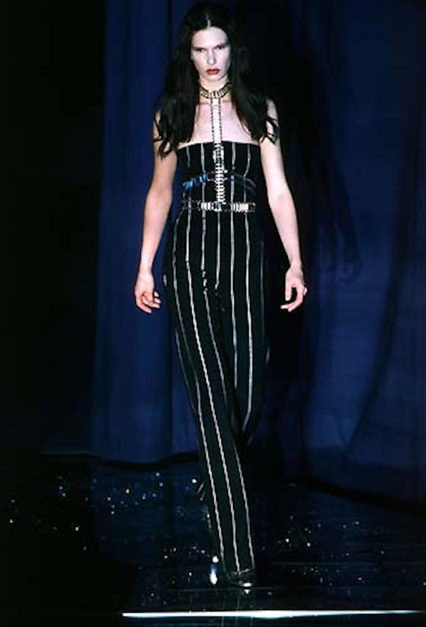 - Vintage Gianni Versace par Donatella Versace, Combinaison Bustier à Rayures