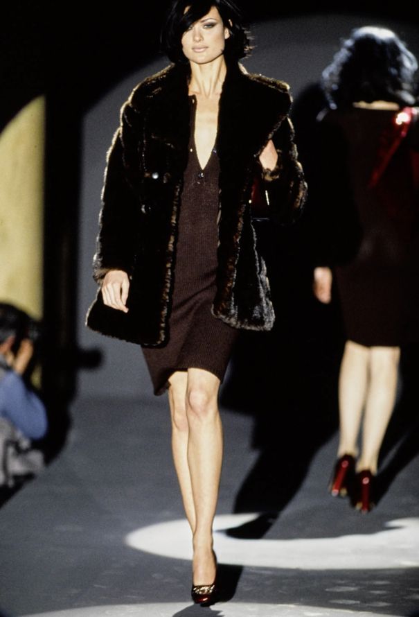 - Une pièce emblématique et hautement collectionnable qui date des débuts du créateur chez Gucci au milieu des années 90. Elle a été portée par Madonna lors de la Semaine de la mode de Paris en 1995, au premier rang de Helmut Lang et John Galliano.