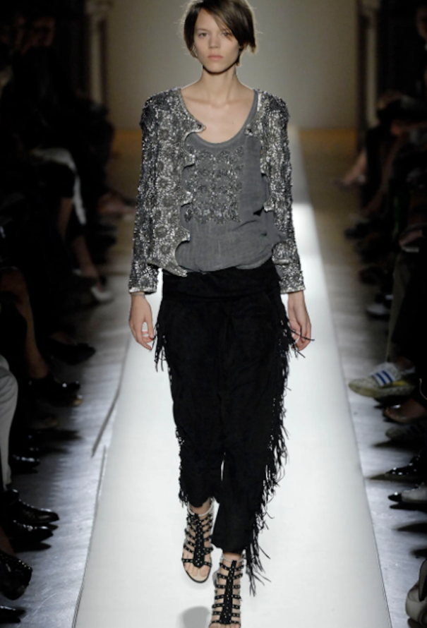 - Balmain par Christophe Decarnin, Pantalon Harem à Franges en Daim