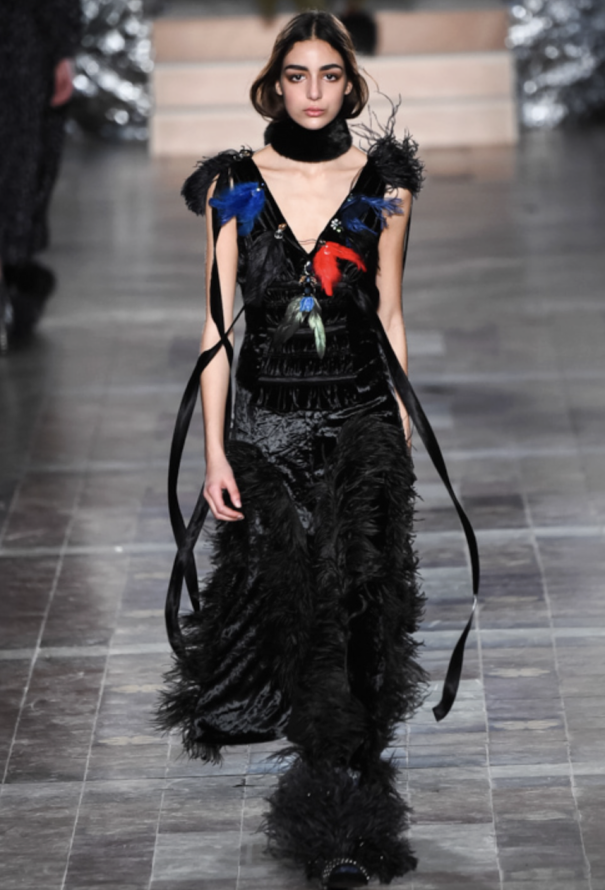 F/W 2017 Robe en Velours Ornée d'Autruche