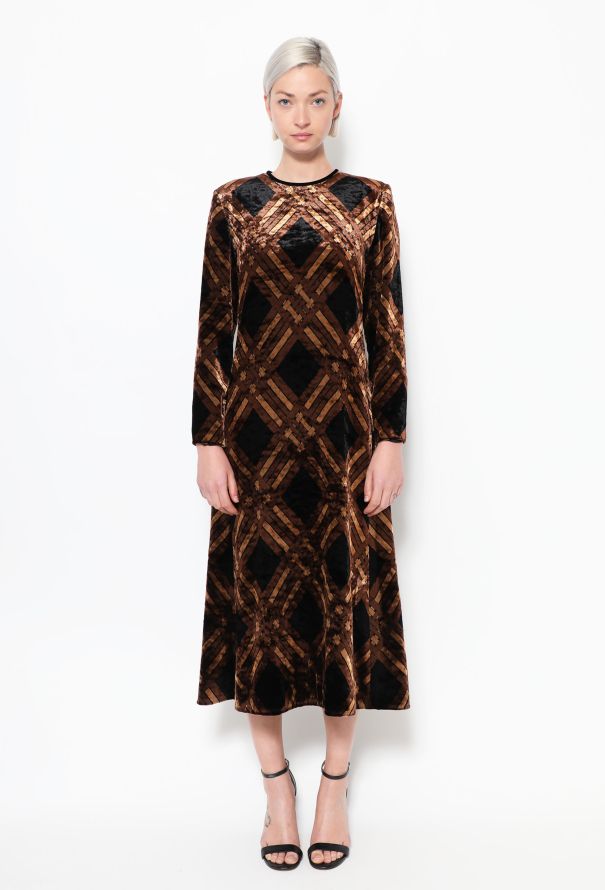 - Saint Laurent par Anthony Vacarello, Robe en Velours Intarsia