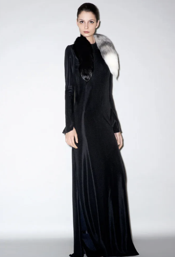 - Robe longue en jersey stretch noir, entièrement doublée de soie