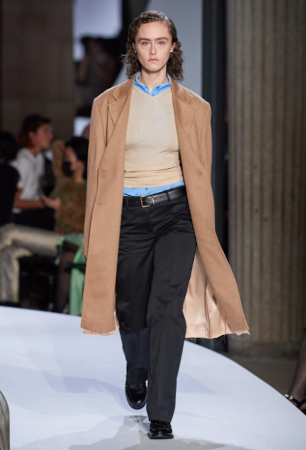 - Miu Miu par Miuccia Prada, Manteau Cranté à Logo Camel