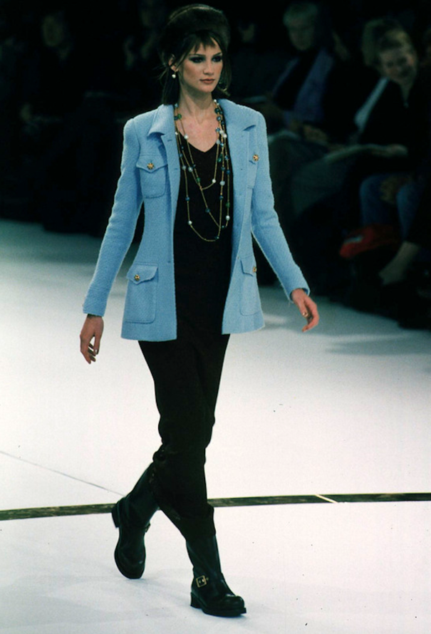 - Une pièce emblématique des années 90 de Chanel, portée par Stella Tennant lors de la campagne publicitaire officielle réalisée par Karl Lagerfeld.